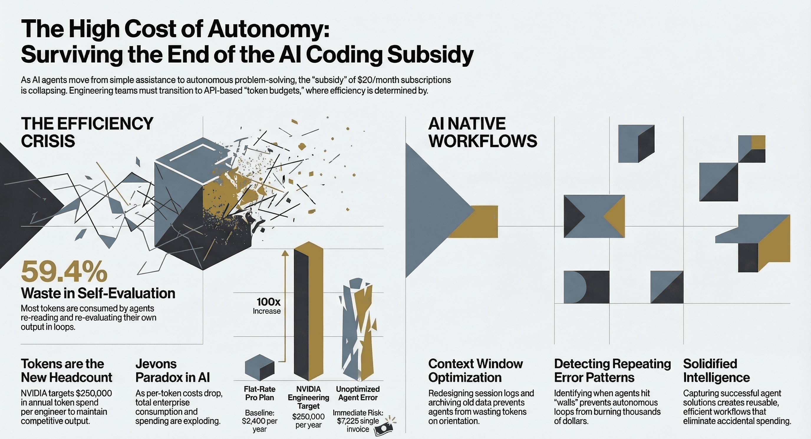 59.4% of tokens go to agents re-reading their own work. Jensen Huang wants engineers consuming $250K in tokens. The AI coding subsidy is ending — here's what comes next.